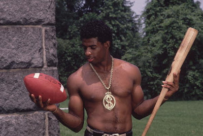 Deion Sanders played professional baseball and basketball in the 1990's. He was a super athlete and did well in both sports. He was also a very sexy athlete and showed skin a few times.